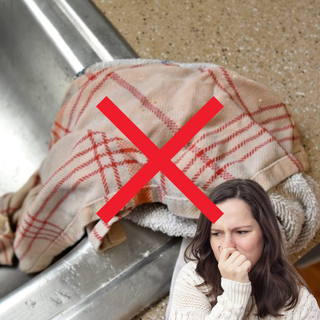 ✅ Înlocuiește complet prosoapele ude sau bureții care miros