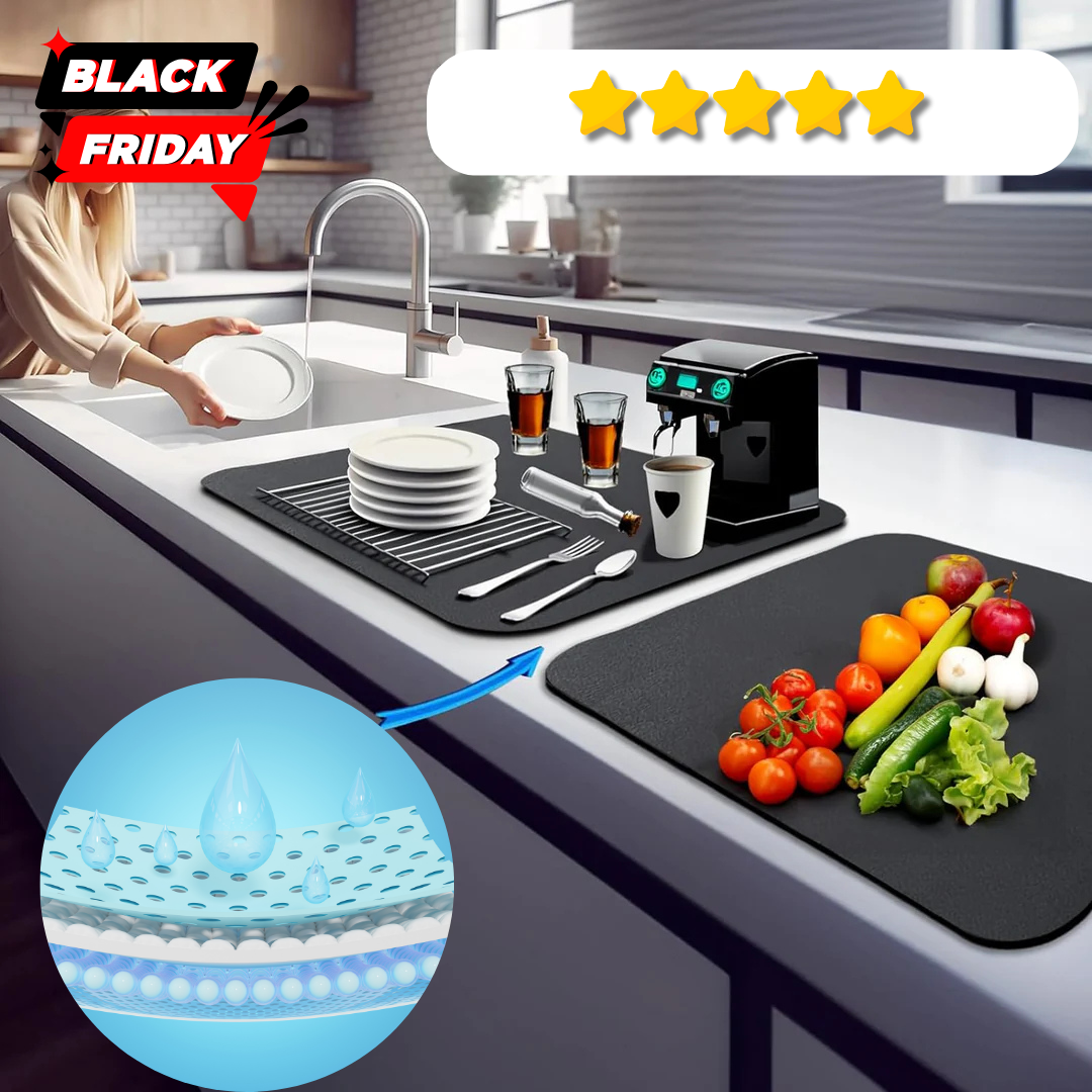 ProAbsorb® absoarbe instant apa de pe vase, eliminând prosopul ud din bucătăria ta. Protejează blatul de umezeală și pete, prevenind apariția mucegaiului și a mirosurilor neplăcute. Cu un design modern și practic, îți menține bucătăria organizată, curată și mereu pregătită pentru gătit!